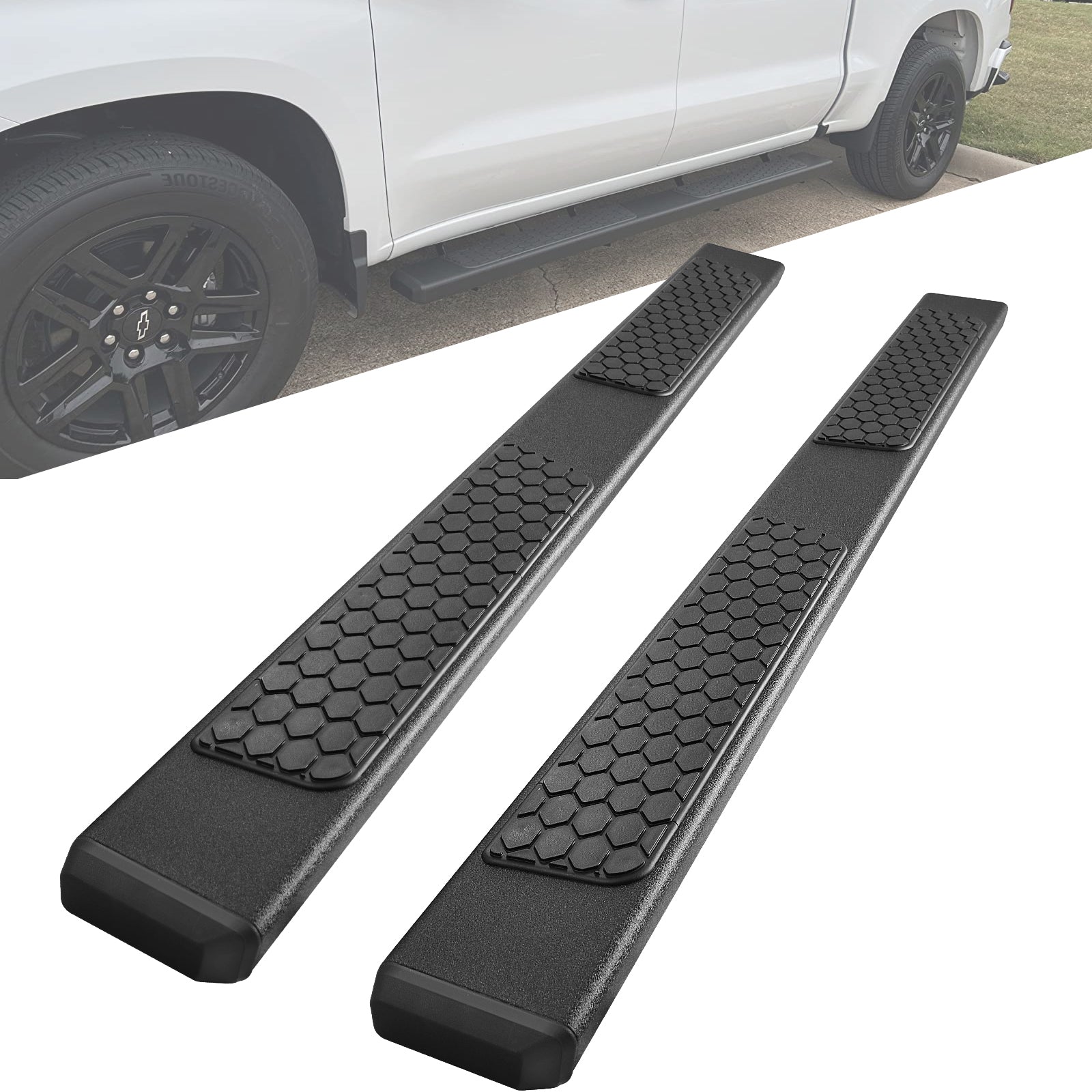 - MATERIAL: The Running Boards Are Made Of Heavy Dudy Carbon Steel With Dual-stage Textured Black Powder Surface. The Steps Can Withstand Rain Erosion And Have Rust And Corrosion Resistant.